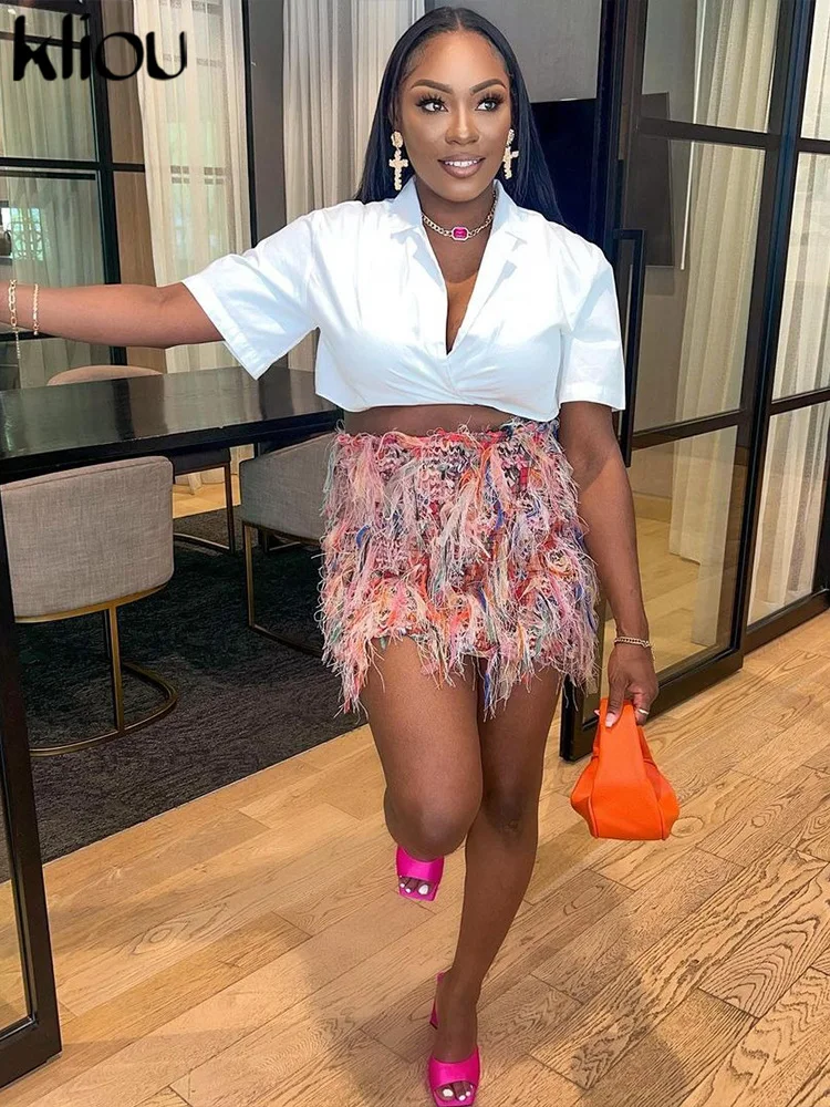 Crochet Tassel Hip Skirt – Women’s High Waist Contrast Color